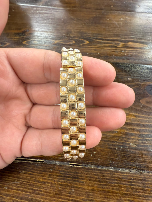 Natural Wood/Crystal Beaded Stretch Bracelet
