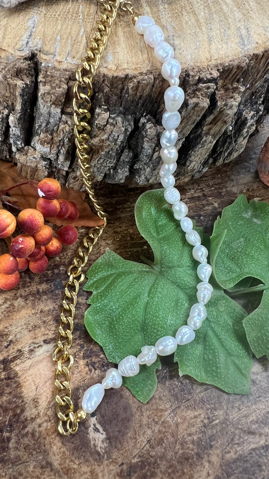Set Of 7 Pearl/Gold Breaded Bracelets