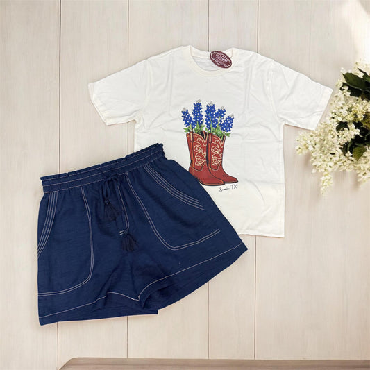 Bluebonnet Boots Cream T-Shirt Plus Size