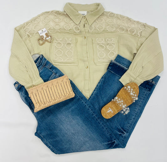 Denim/Lace Patches With Puff Sleeves