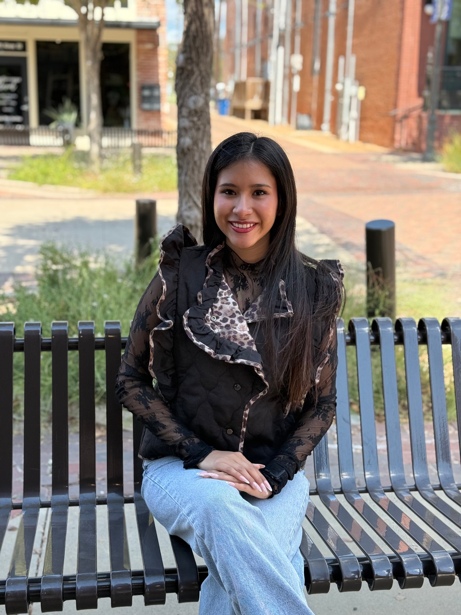 Elevate your style with this chic Black Denim Ruffle Vest, designed to add a touch of edgy sophistication to any outfit.