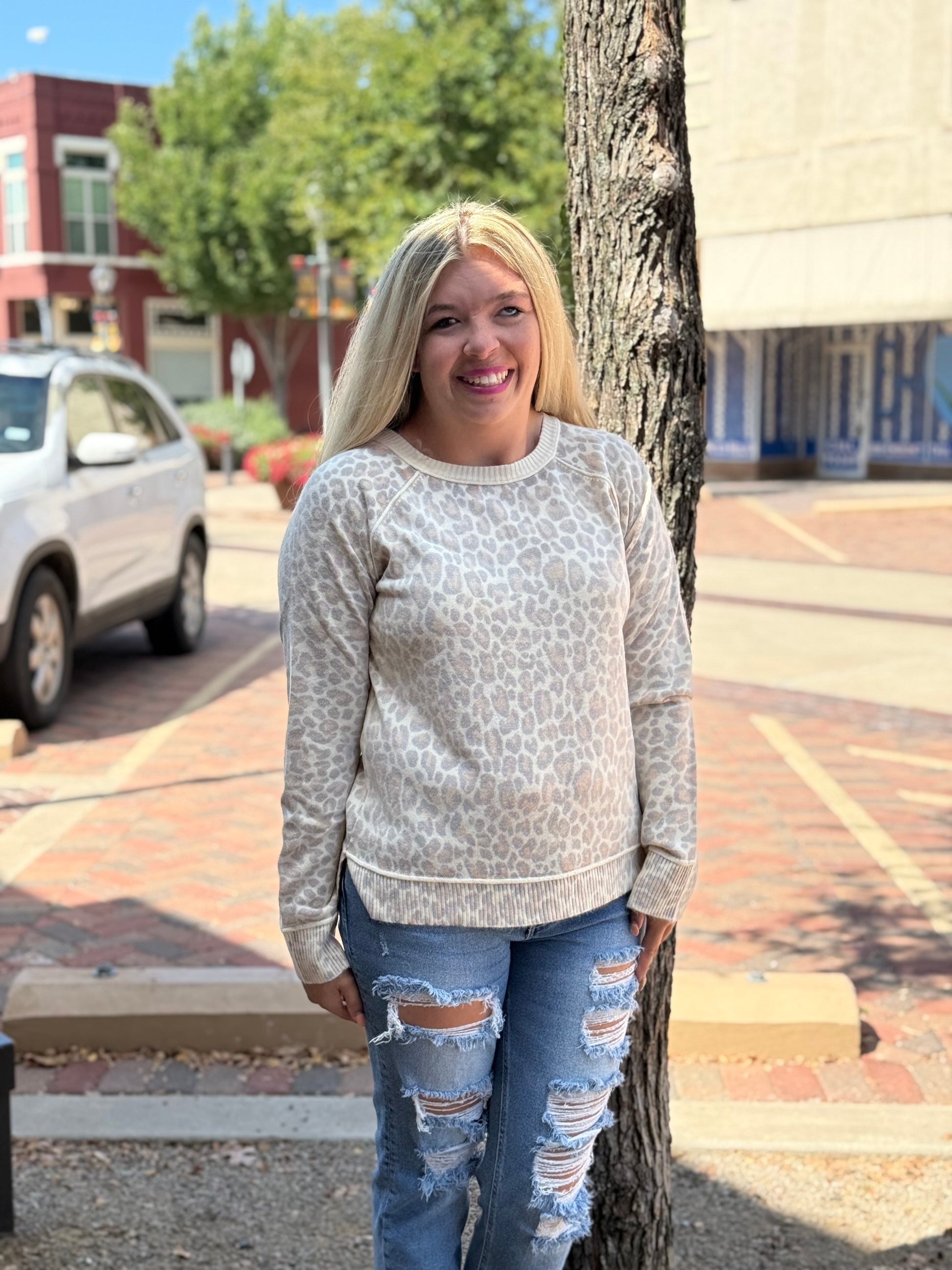 Contrast Cheetah Print Sweater