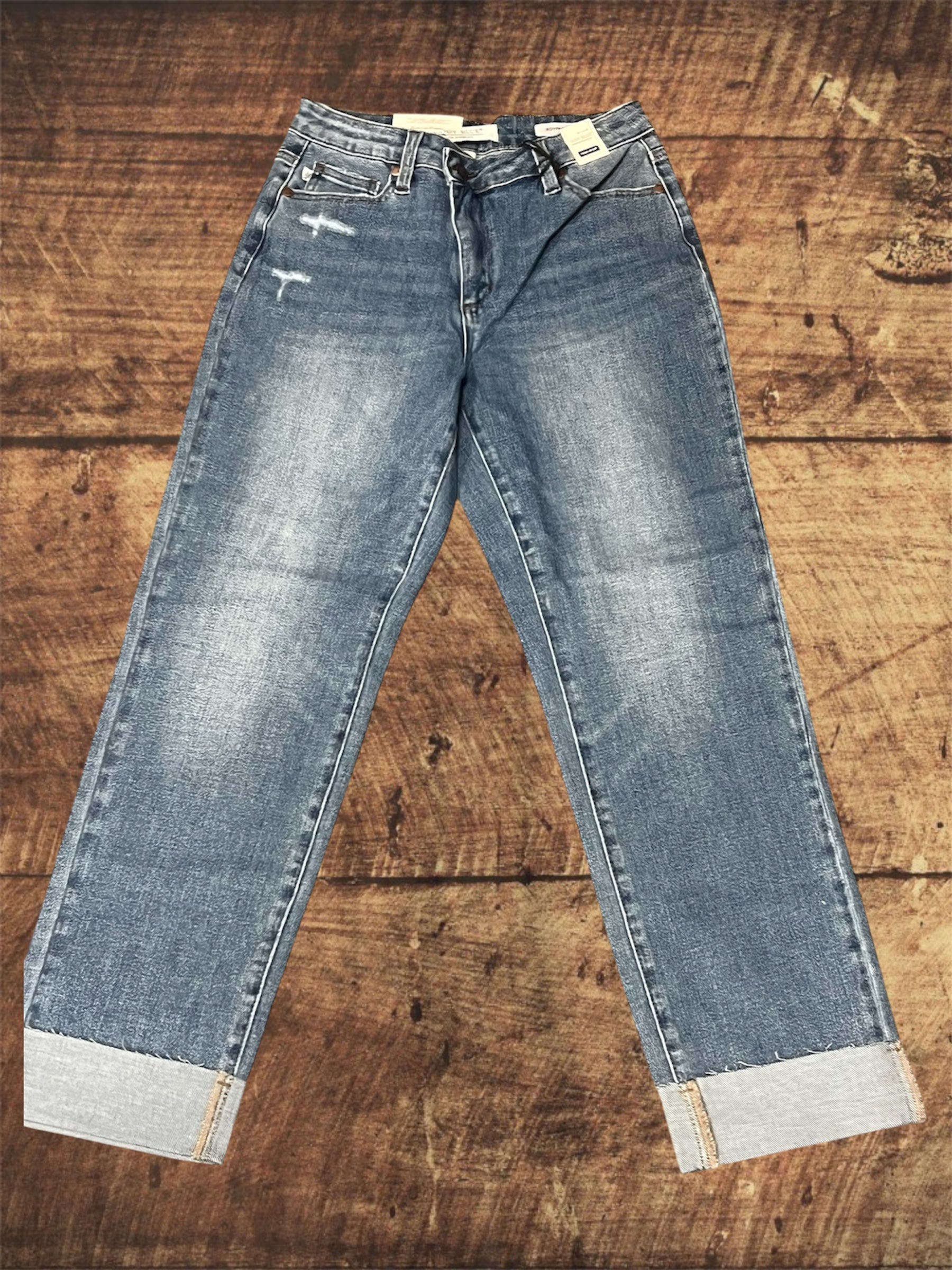 Step into effortless style with the Judy Blue HW BF Criss-Cross Mild Destroy Single Cuff jeans. Featuring a high waist and playful criss-cross detail, these jeans offer a flattering fit with just the right amount of edge. The mild distressed look adds character without going overboard, while the single cuff brings a fun, laid-back vibe. Perfect for turning heads and staying comfortable all day long!