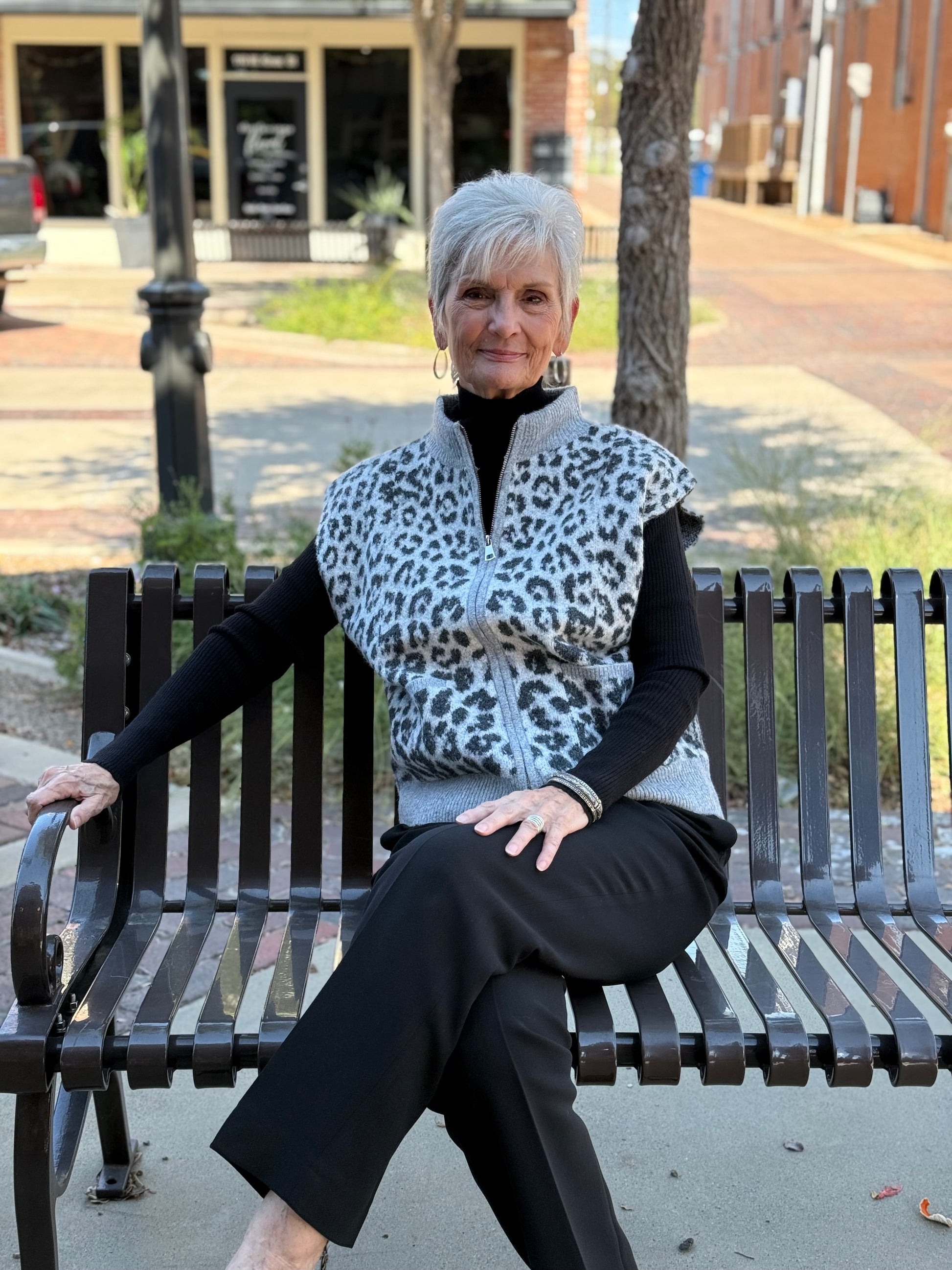 Elevate your wardrobe with this chic light grey sweater vest featuring a subtle cheetah print. Perfect for layering, it adds a stylish edge to any outfit while keeping you comfortable and cozy.