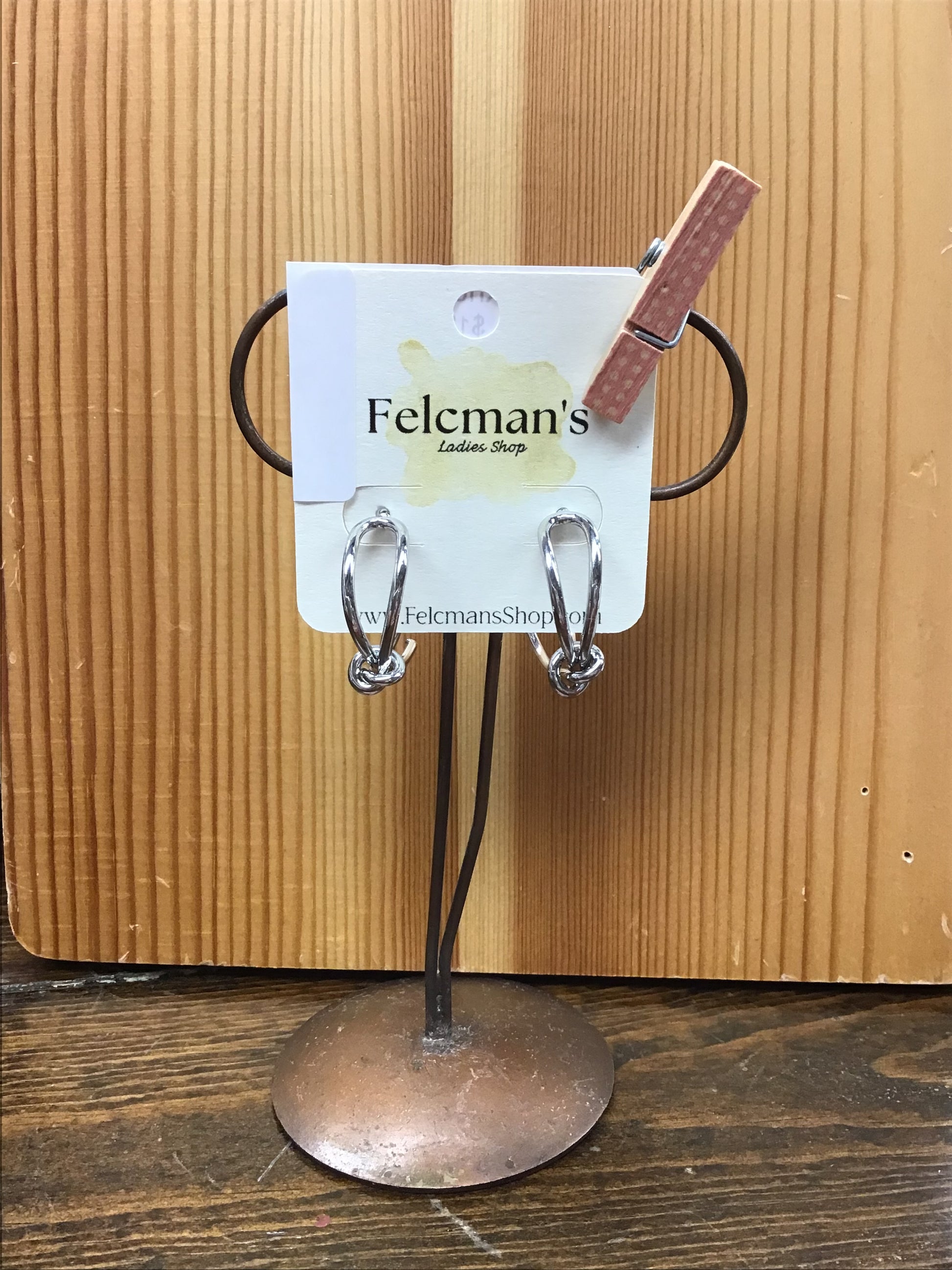 Twisted knots meet timeless elegance in these charming silver hoops. Perfect for adding a touch of sophisticated fun to any outfit, these versatile earrings work just as well with casual weekend wear as they do with dressed-up occasions. A playful take on a classic style that deserves a permanent spot in your jewelry rotation.